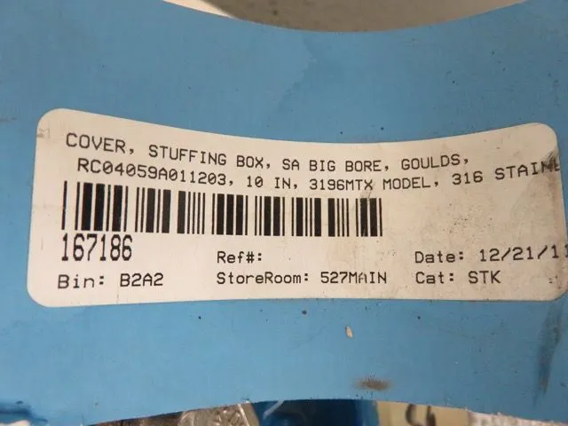 New Goulds Stuffing Box Cover, Cast No. 68793, diameter 10″, material Stainless