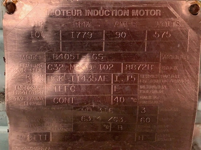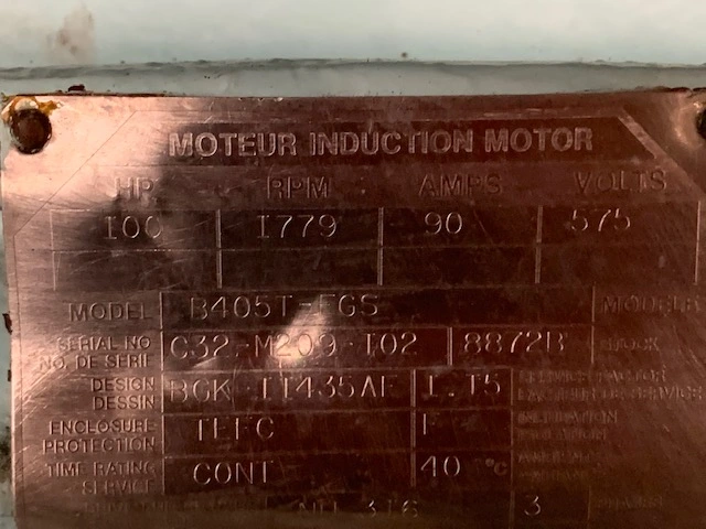 100HP BBC AC Motor, 1779rpm, 575 volts, 90 Amps, 405T Frame