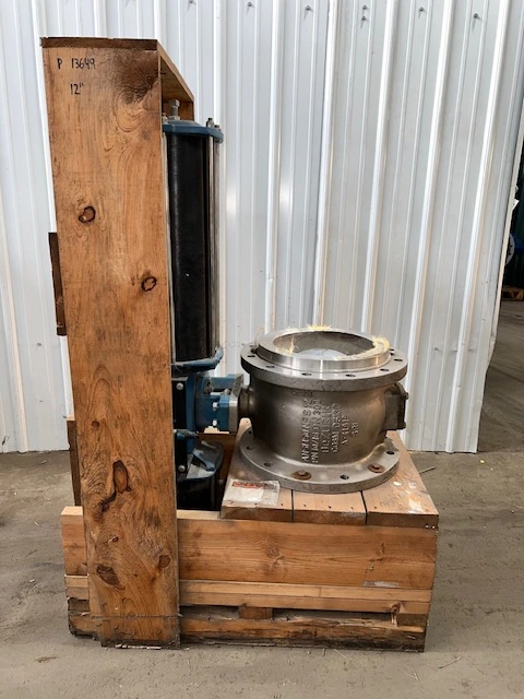 New Storeroom Spare Dezurik 12″ VPB V-Ball Control valve with pneumatic actuator and pneumatic 3-15 psi positioner