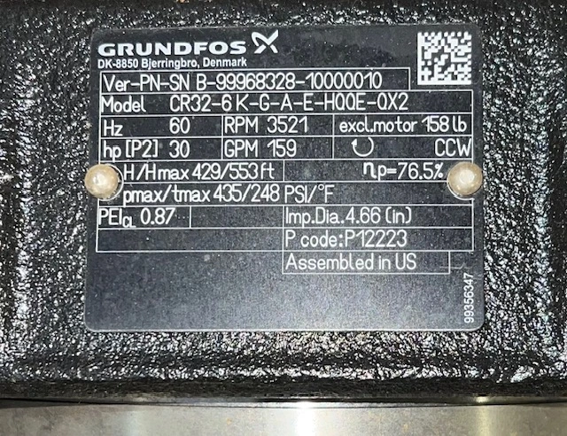 30 hp Grundfos Pump Model CR32-6K-G-A-E-HQQE-QX2 New Storeroom Spare