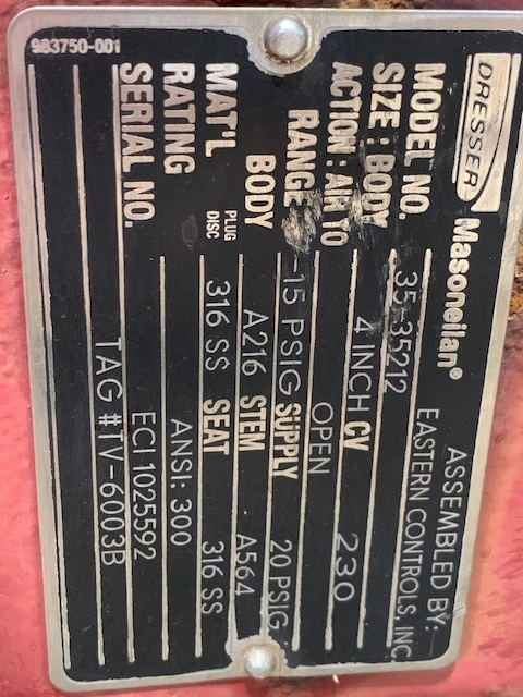 Masoneilan Camflex II 4″-300# plug control valve, air operated