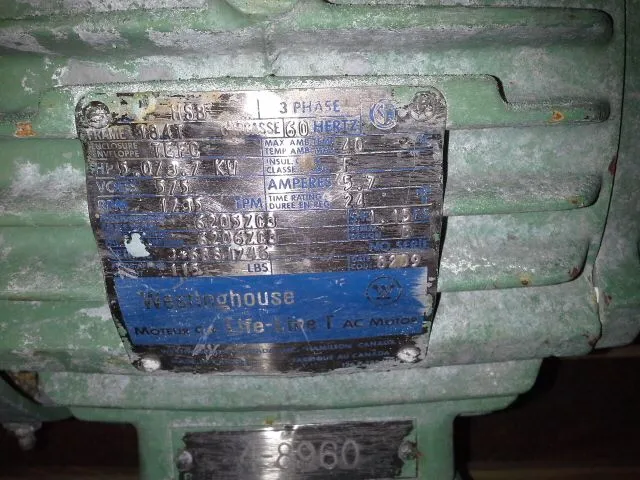 Westinghouse Life Line AC motor, 5 hp, 575v, 1735 rpm, frame 184T
