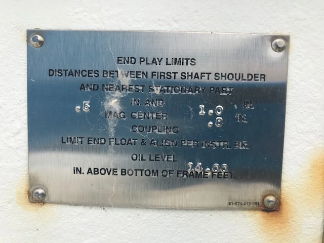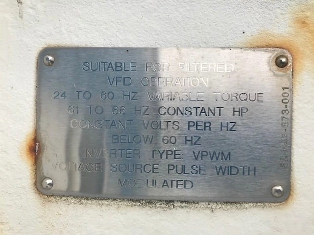 Siemens Induction AC motor 5000 hp, 610 amps, 3585 rpm, Duty CONT, type CGII, frame 8010, volts 4000, hertz 60, Date of Manufacture 08/07, Service Factor 1.15, Class Insul. F, Made in U.S.A. Weights aprox 18,500 lbs