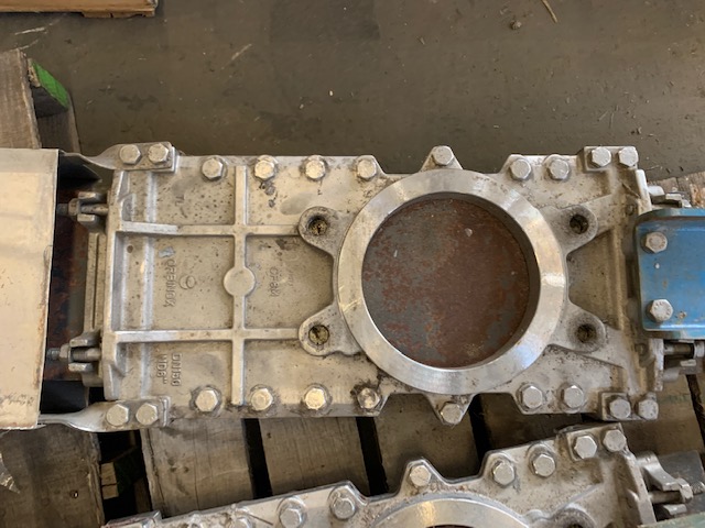 6″ TL Orbinox Thru port stainless steel knifegate valve, air operated