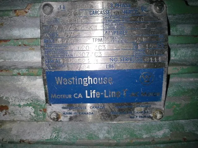 Westinghouse Life Line AC motor, 7.5 hp, 575v, 1735 rpm, frame 213T