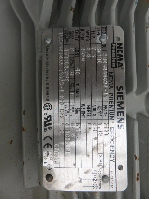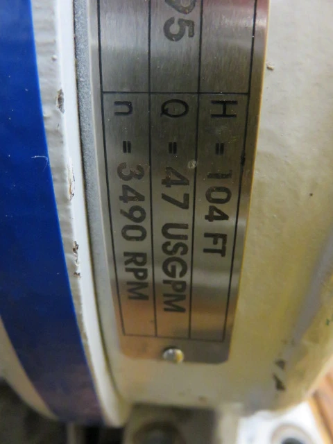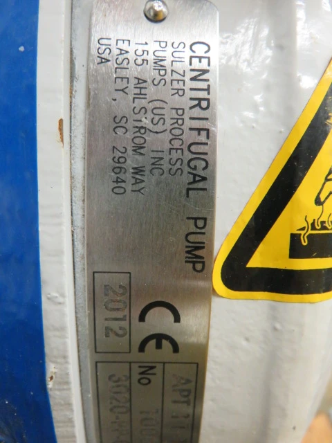 New Surplus Sulzer pump model APT 11-1A, material A890 Stainless,made in 2012, 104 ft HD, 47 usgpm, 3490 rpm, open impeller with Siemens AC Motor 7.5hp, frame 213T, 460v, 60Hz, 3520rpm.