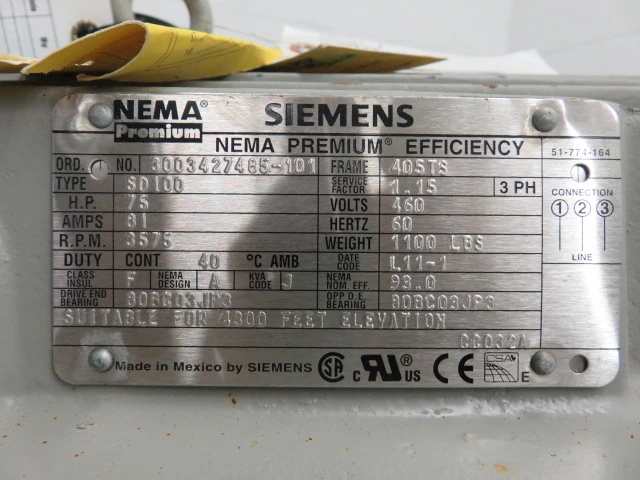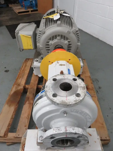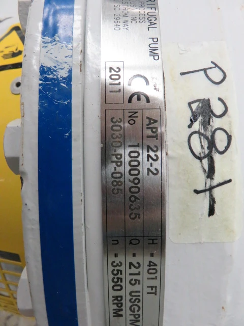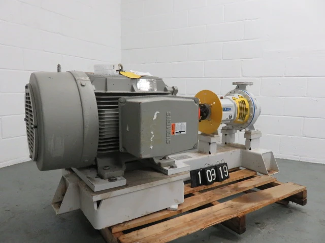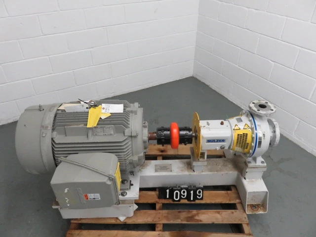 New Surplus Sulzer pump model APT 22-2, material A890 Stainless,made in 2011, 401 ft HD, 215 usgpm, 3550 rpm, open impeller with Siemens AC Motor 75hp, frame 405TS, 460v, 60Hz, 3575rpm.