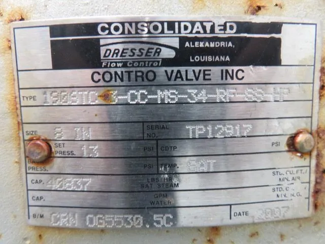 Consolidated Pressure Relief Valve type 1906TC, size 8″, material wcb with 316ss internals