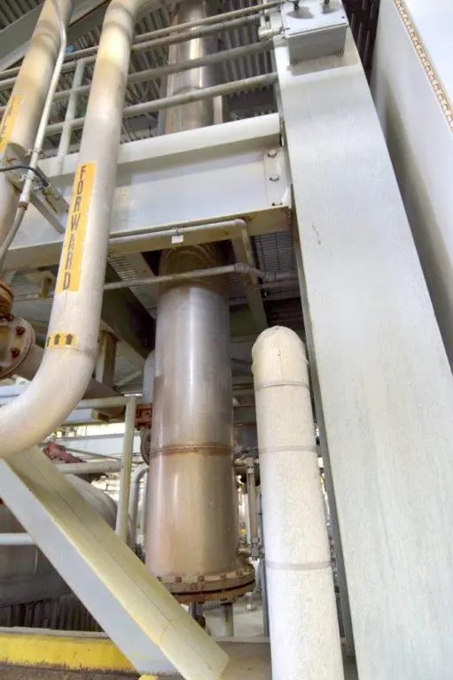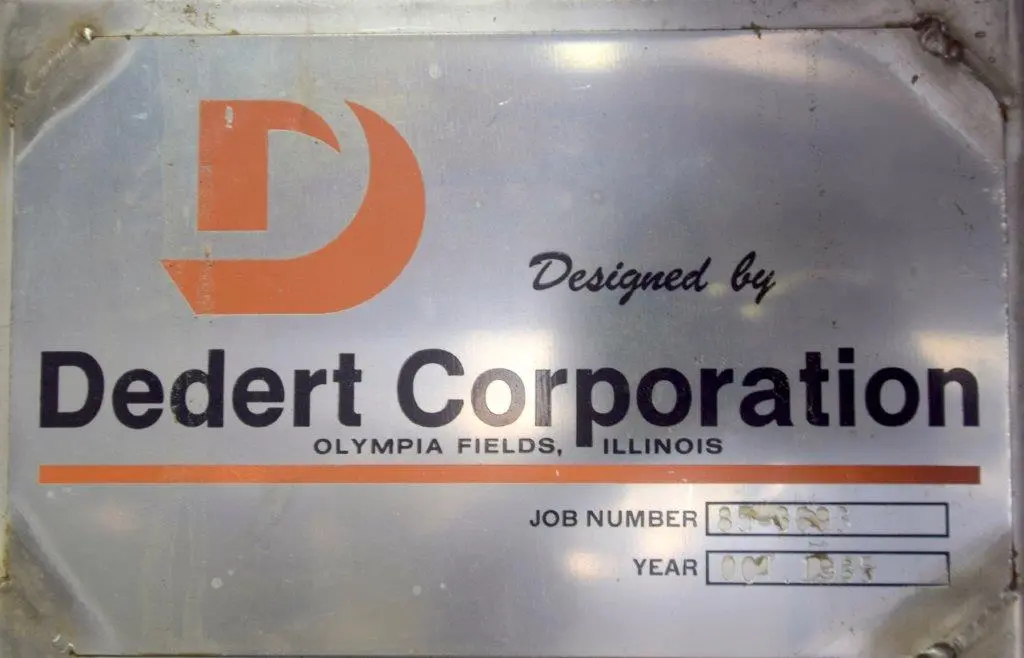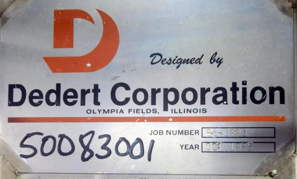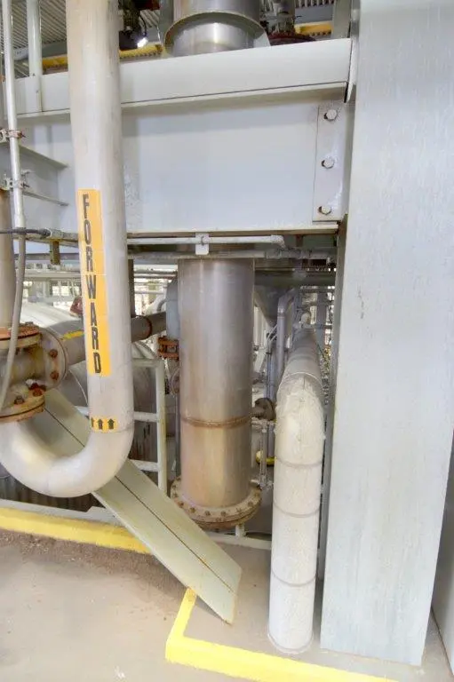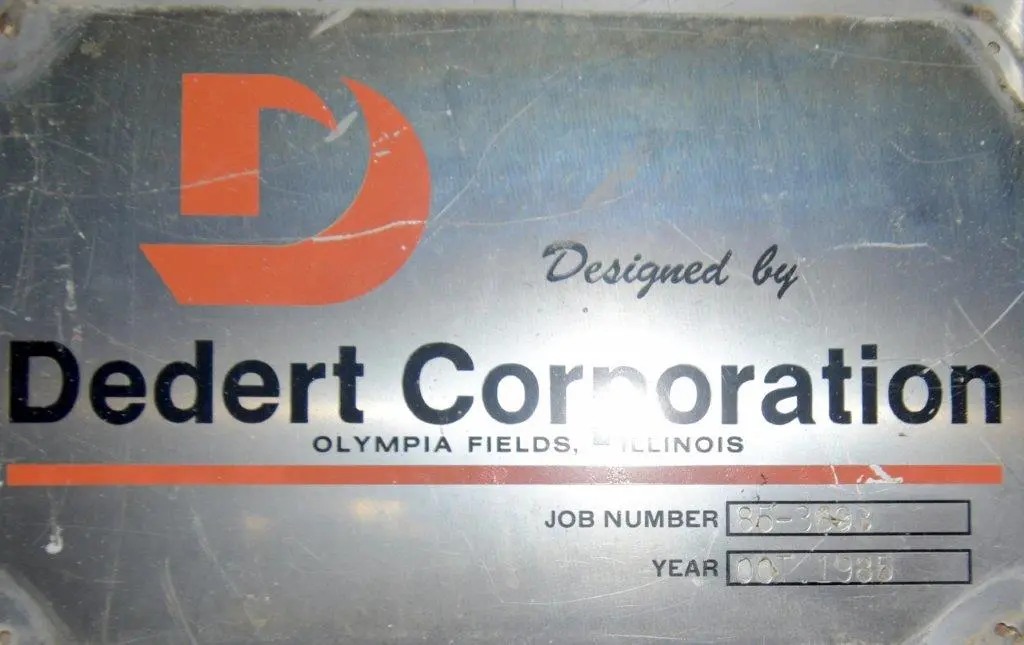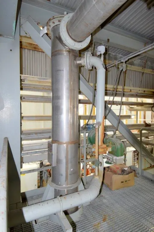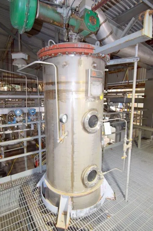 Used- Dedert Single Effect Evaporator, Consisting Of: (1) Vertical flash cooler, model FC-1, 304 stainless steel. Approximate 40″ diameter x 108″ tall, internal rated Full Vacuum/15 psi at 250 degrees F., side lug mounts, certified by Walker Stainless, National Board# 988, serial# 3565, built 1985, (1) Vertical flash cooler, model FC-2, 316 stainless steel. Approximate 36″ diameter x 108″ tall, internal rated Full Vacuum/15 psi at 250 degrees F., side lug mounts, certified by Walker Stainless, National Board# 987, serial# 3564, built 1985, (1) Vertical flash cooler condenser, model FCC-1, 316 stainless steel. Approximate 220 square feet. Approximate 16″ diameter x 180″ tall, tube side rated Full Vacuum/15 psi at 250 degrees F., shell side rated Full Vacuum/75 psi at 250 degrees F., side lug mounts, certified by Walker Stainless, National Board# 990, serial# 3563, built 1985.