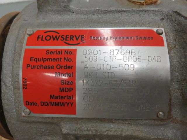 Durco pump model MK3 STD size 1K3x2-62/54RV , material CD4M