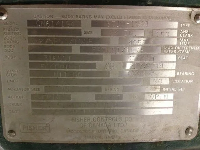 Fisher 24″ -150 Butterfly Valve with pneumatic actuator 1061/80 and 3610 positioner; material 316ss