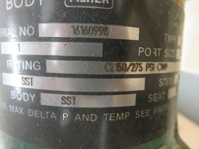 Fisher type EZ size 1″-150, material 316ss, actuator 667/30 and positioner DVC 6010