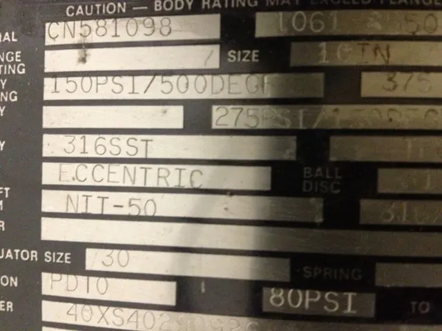 Fisher butterfly valve size 10″, material 316ss, with actuator 1061 size 30