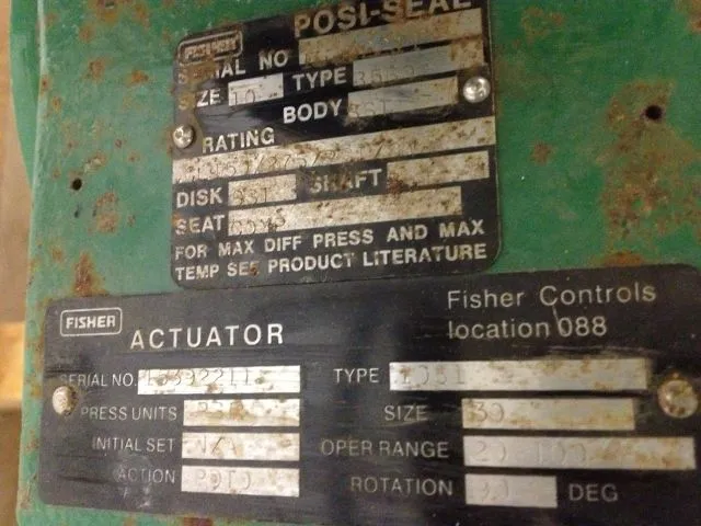 Fisher butterfly valve size 10″, material 316ss, with actuator 1061 size 40 and positioner 6020HC