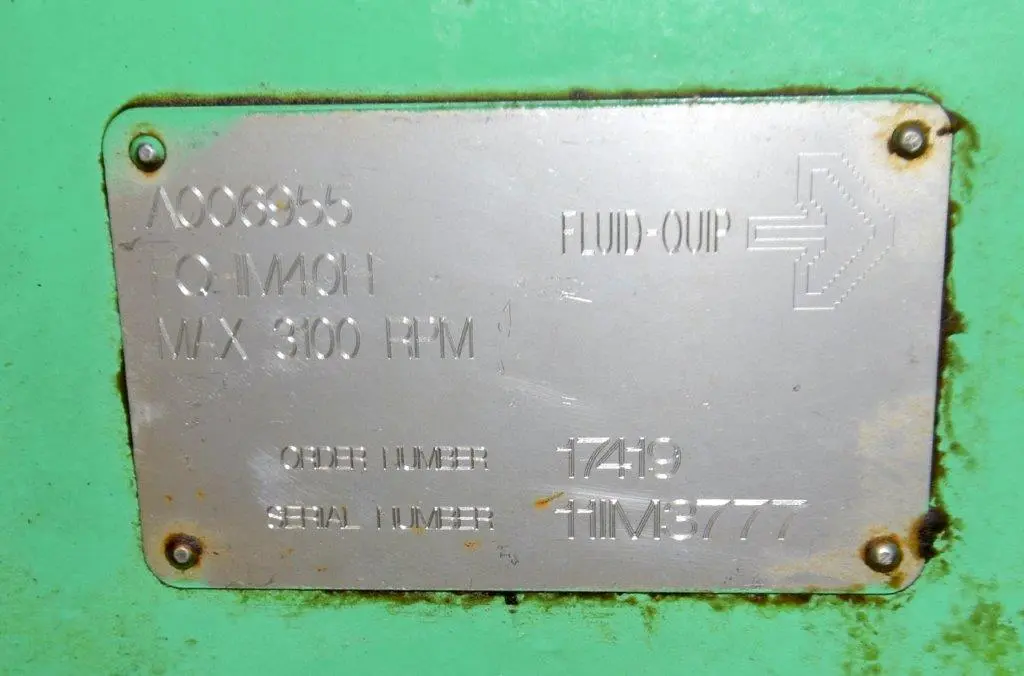 - Used- Fluid Quip Horizontal Rotor Impact Mill, Model FQ-IM40H, Stainless Steel. Approximate 48" diameter rotor, dual top infeed, bottom discharge with removable hopper, rpm 3100 maximum. Driven by a 600hp, 3/60/2300-4160 volt, 1785 rpm motor. Mounted on (4) carbon steel legs. Serial# 11IM3777.