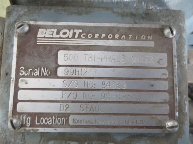 Beloit GL&V Tri-Phase Mixer model 500 new surplus
