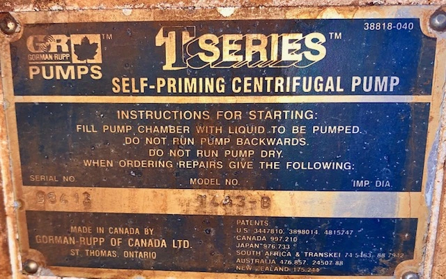Gorman Rupp T4A3-B Self-Priming Centrifugal Pump; located in our facility in Rush City, MN