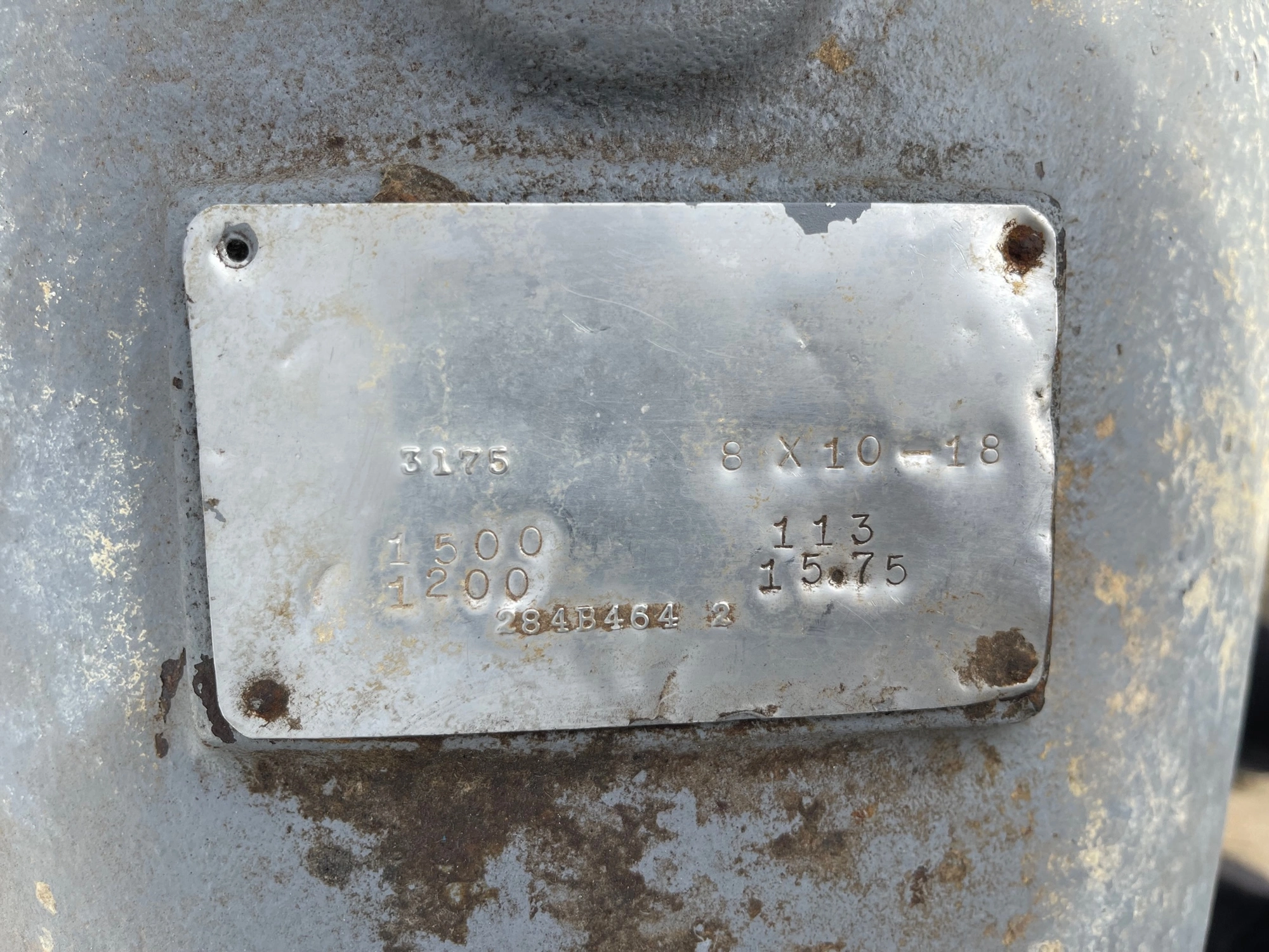 Goulds 3175M 8x10x18. Material 316ss. Impeller Diameter 15.75″, 1500 gpm. 113 ft HD. 1200 rpm. S/N 284B464-2