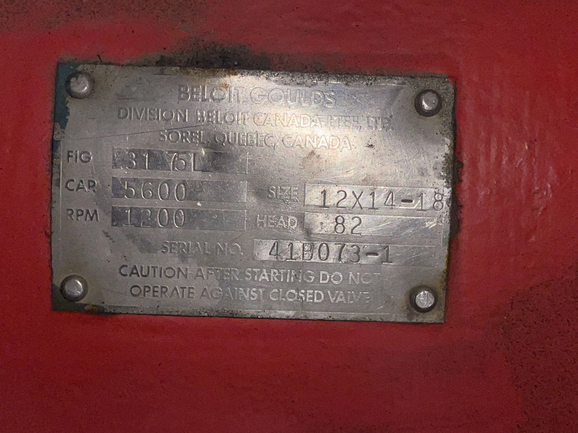 Goulds Stock pump model 3175 size 12x14x18, Stainless Steel Impeller, Stainless Steel Casing, Stainless Steel Stuffing Box, Stainless Steel Suction Side Plate