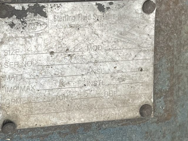Goulds 3175 size 14x14x18H stock pump, material CF8M Stainless