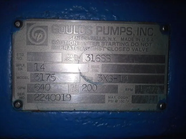 Goulds 3175 size 3x6x14 material 316ss, used condition