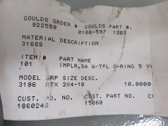 New Impeller for Goulds 3196 size 3x4x10, 5 vane open, 316ss, diameter 10″