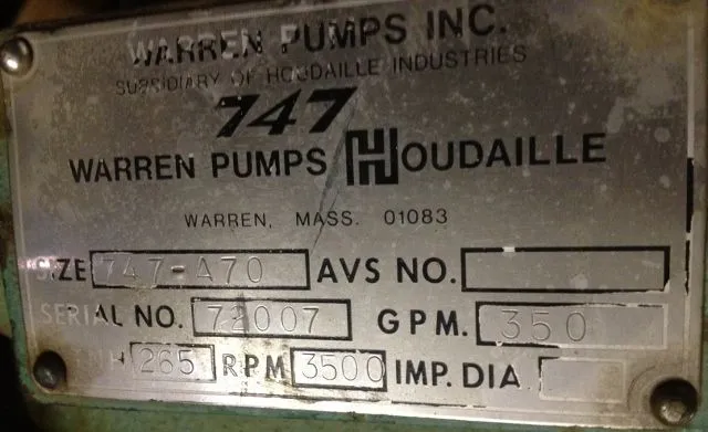 Warren pump size 747-A70 Casing Volute