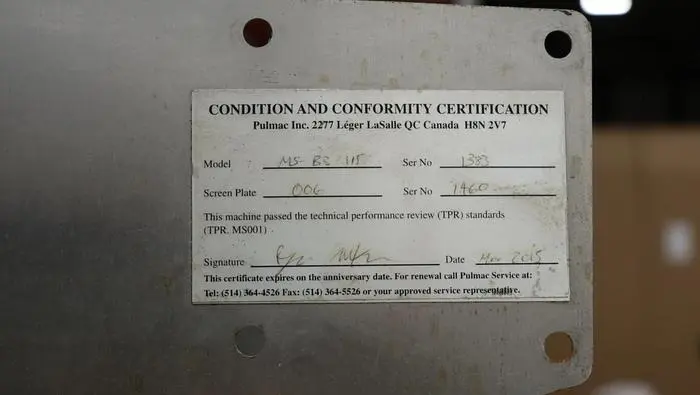 Pulmac MS-B3-115V Shiv Analyzer, 115 VAC, 60 HZ, With Century A/C Motor, .75 HP, 3450 RPM, 230/115 Volts, L56J Frame