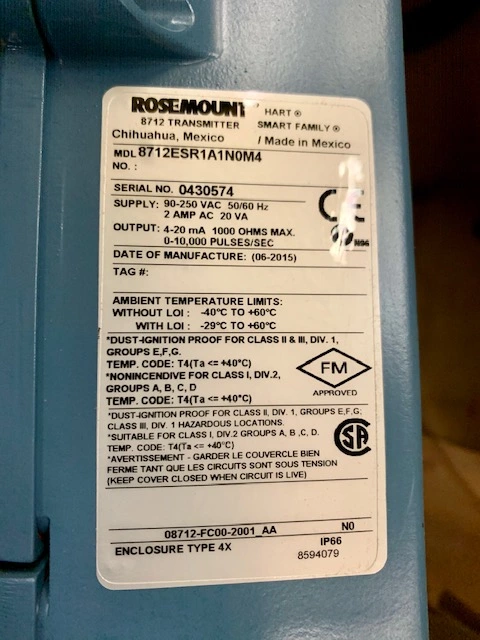 Unused Condition! Rosemount 8712ESR Remote Mount Flowmeter Display unit