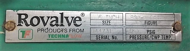Rovalve 6″-150 knifegate valve with pneumatic actuator; figure S20; material body, disc, seat: 316 stainless