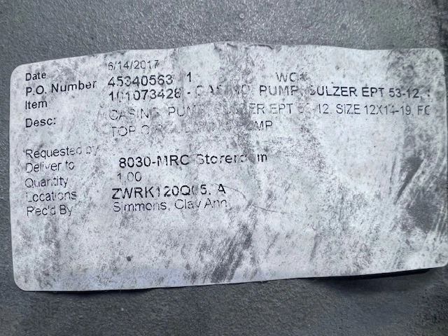 New Storeroom Spare Sulzer EPT53-12 size 12x14x19 A890 stainless steel volute/casing