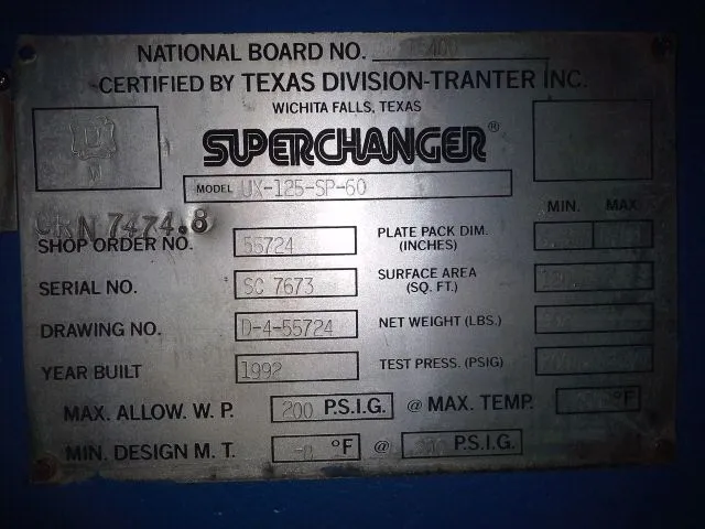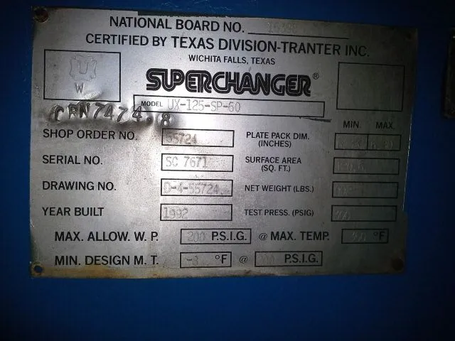 Superchanger Plate Heat Exchanger model UX-125-SP-60, 3 units available