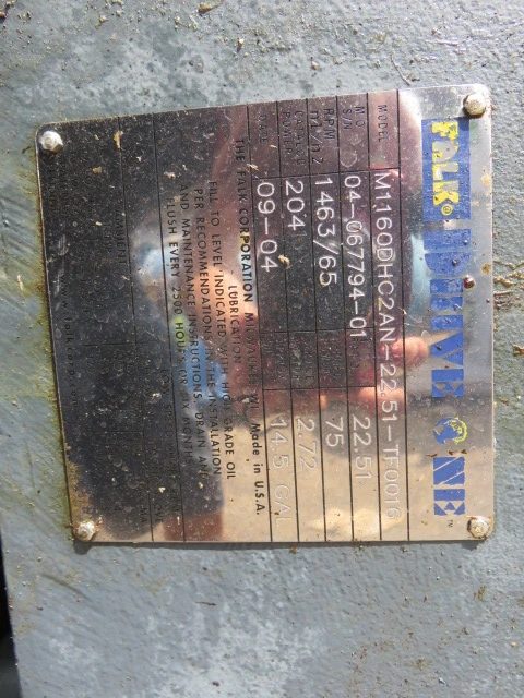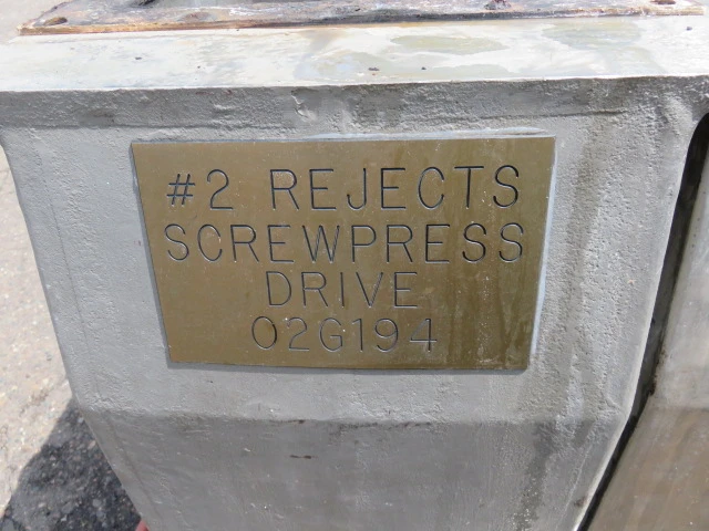 Thune Eureka dewatering screw press model SP-32L, material 316 stainless, made in Norway.With Reliance Electric 75hp, 1780rpm, TEFC, 460v, AC Motor; and Falk Gear Reducer M1160DHC2AN-22.51; Ratio 22.51
