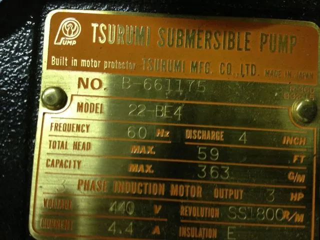 Tsurumi Submersible Pump size 4″, model 22-BE-4, new